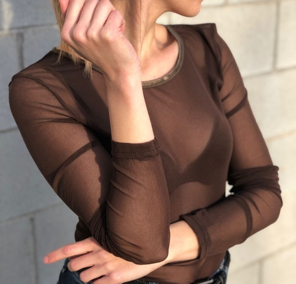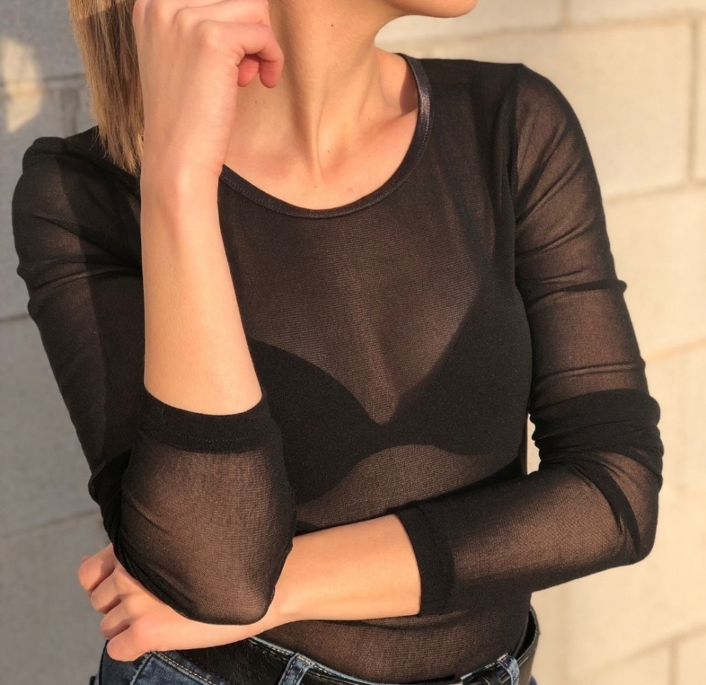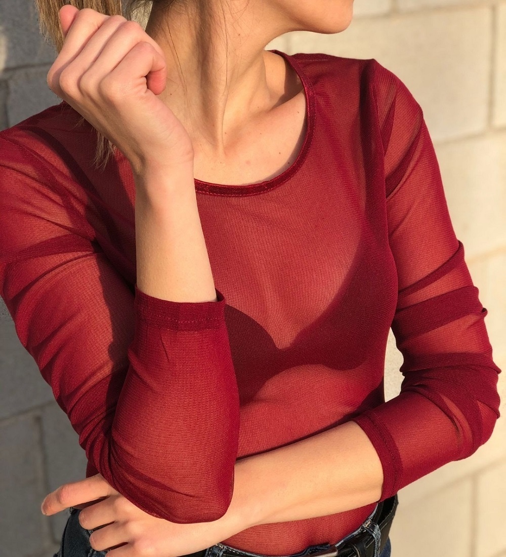Camiseta tul transparente en varios colores, ajustada y elástica.